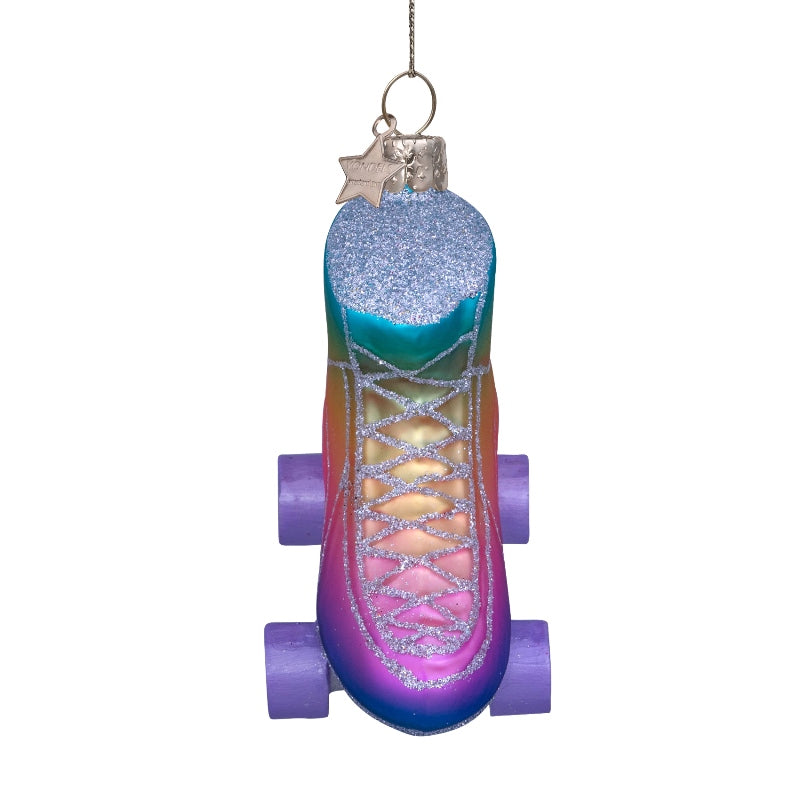 Ornament glass multi soft color rainbow skate H8cm